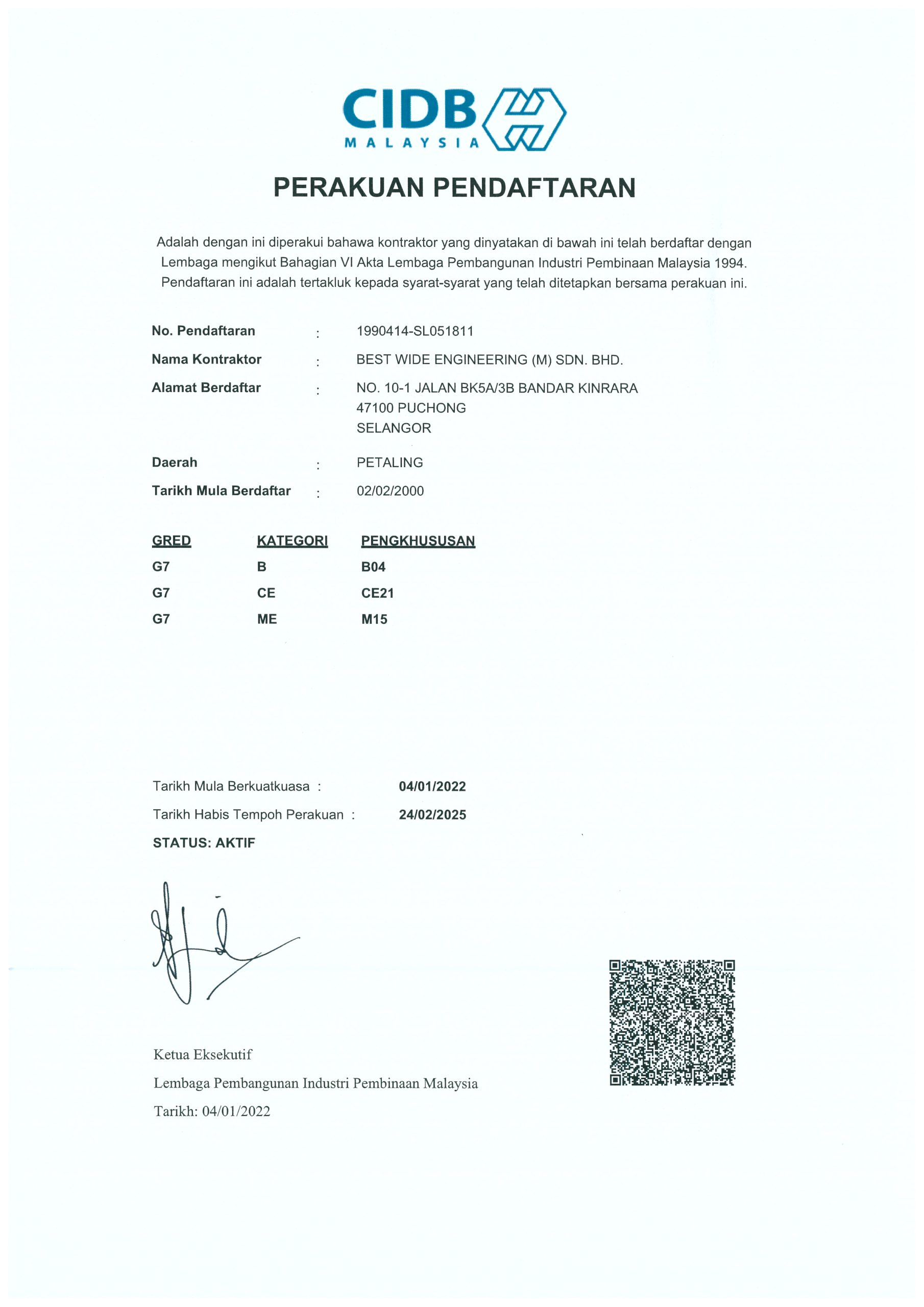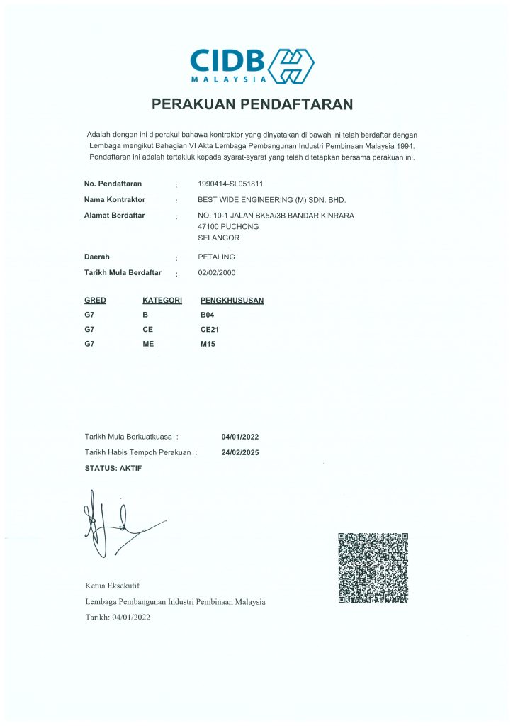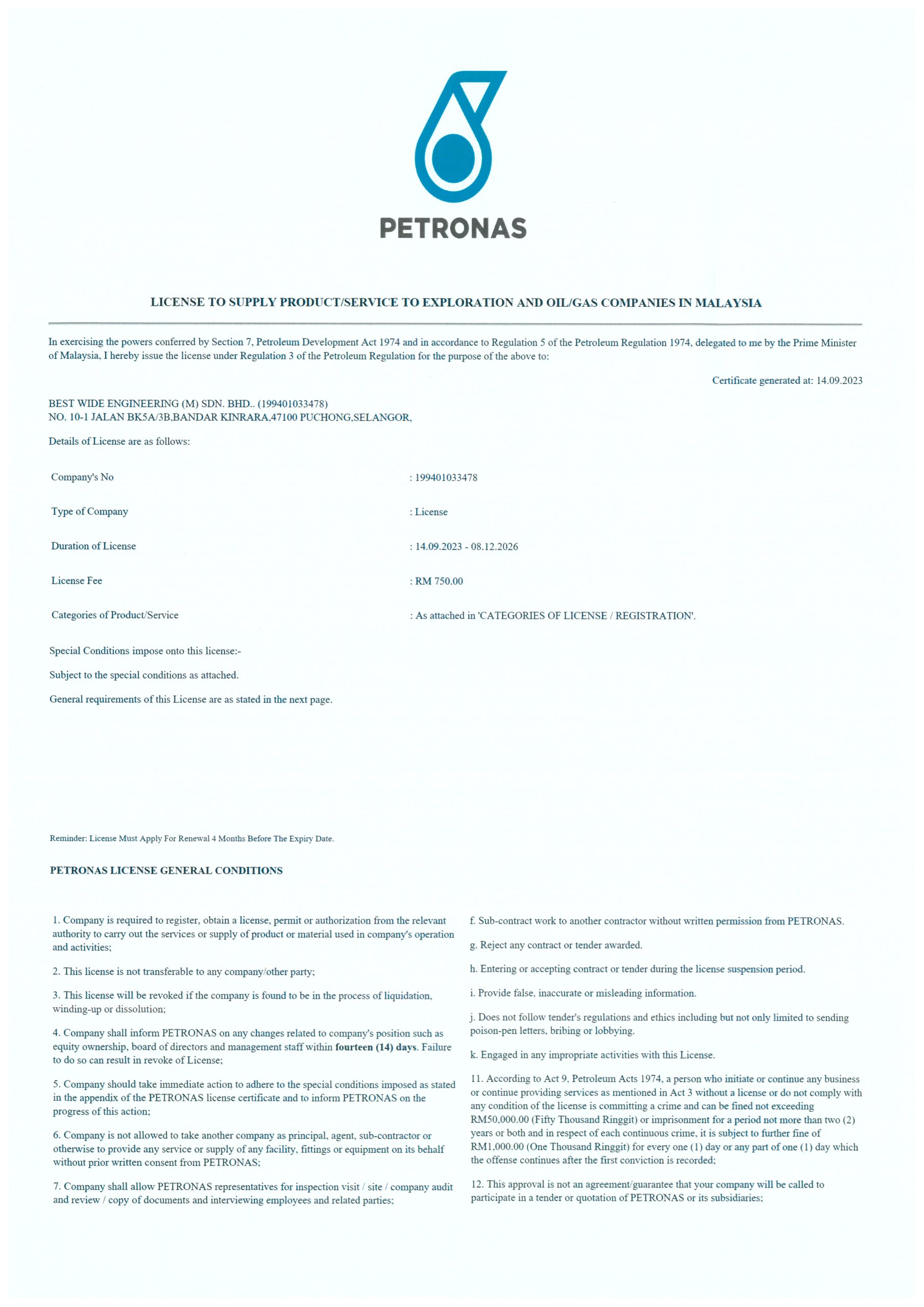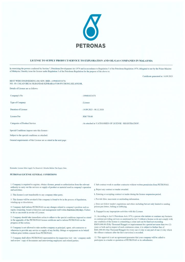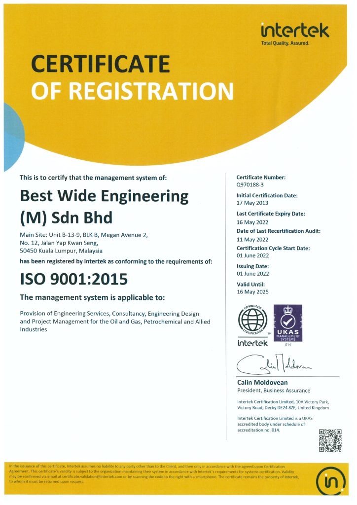 Best Wide Engineering (M) Sdn Bhd (BWE) is an ISO-9001:2015 certified company established in Kuala Lumpur in 1995, specialised in providing engineering services for Oil and Gas and Petrochemical industries for offshore and onshore plants. During the years BWE has successfully delivered various projects to prestigious clients worldwide. In September 2024, BWE has reached another significant milestone with the major share acquisition by Sarawak local and thus expanding its market reach into Sarawak oil and gas business opportunities.